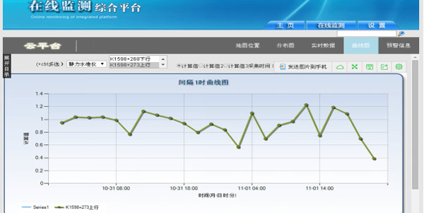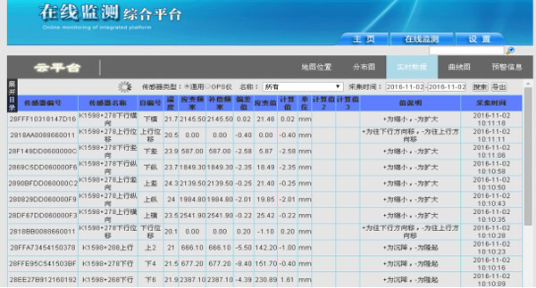 用戶通過該平臺根據權限查看各自站點數據,數據可以現場布局圖顯示,也可以二維曲線顯示,還可根據時間段設置打印報表。同時可以設置具體每個傳感器的幾級警戒值,超過警戒值會自行報警。系統平臺可海量數據存儲,所有數據均有備份,可以追根溯源并且客戶公開采集數據。