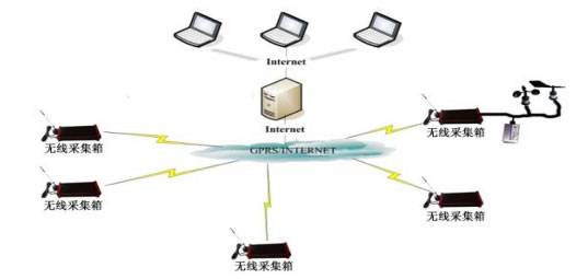 5.每個隧道圍巖量測采集儀無線把數據傳送到GPRS采集儀,物位計有線連接本段面隧道圍巖量測采集儀,隧道圍巖采集儀將本段面物位計的數據傳輸到GPRS采集箱。